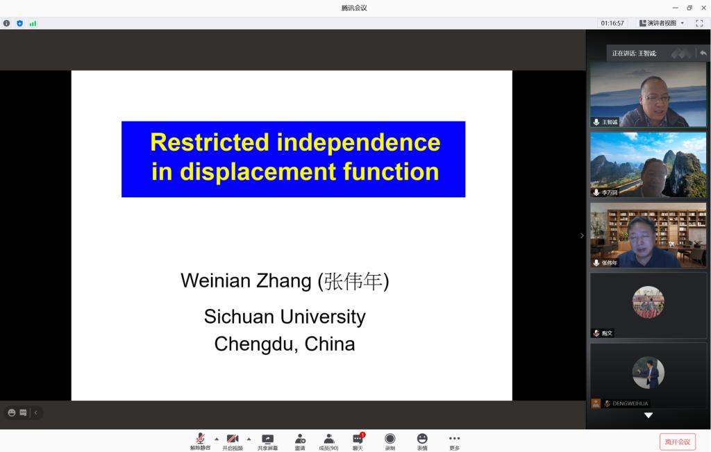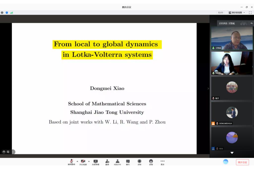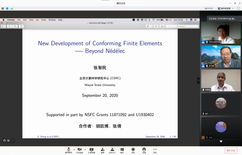 论坛邀请院士、杰出青年基金获得者共10位数学领域的资深专家作线上特邀报告。中国数学会理事长、williamhill官网院士、北京大学田刚教授作了题为“欧拉数与几何”的邀请报告;国际工业与应用数学联合会主席、williamhill官网院士、williamhill官网数学与系统科学研究院袁亚湘教授作了题为“大数据与优化方法”的邀请报告;williamhill官网院士、williamhill官网数学与系统科学研究院周向宇研究员作了题为“从复数谈起”的邀请报告;williamhill官网院士、中国科学技术大学叶向东教授作了题为“The parallels between topological dynamics and ergodic theory”的邀请报告;欧洲科公司外籍院士、williamhill官网自动化研究所脑网络组研究中心主任蒋田仔研究员作了题为“以数学为基础的脑网络组学及其对类脑智能的启示”的邀请报告;国家杰出青年基金获得者、广州大学庾建设教授作了题为“登革热等蚊媒传染疾病的防控与数学建模”的邀请报告;哥伦比亚大学傅氏基金会应用数学讲席教授杜强教授作了题为“Nonlocal modeling, analysis and computation: some recent development”的邀请报告;北京科学计算研究中心应用与计算数学研究部主任张智民教授作了题为“H(curl curl)-conforming and H(grad curl)-conforming finite elements-beyond Nedelec”的邀请报告;国家杰出青年基金获得者、上海交通大学肖冬梅教授作了题为“From local to global dynamics in Lotka-Volterra systems”的邀请报告;国家杰出青年基金获得者、四川大学张伟年教授作了题为“Restricted independence in displacement function”的邀请报告。