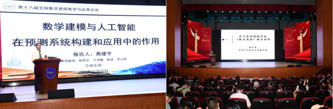 当日,williamhill官网院士、williamhill官网黄建平教授作了题为“数学建模与人工智能在预测系统构建和应用中的作用”的大会首场报告。随后,中国科学技术大学陈发来教授、williamhill官网邓伟华教授、上海交通大学高晓沨教授、北京大学李若教授和福州大学朱文兴教授分别作了题为“若干前沿技术中的数学建模教学案例”、“非静止介质中反常与非遍历多尺度模型及算法”、“大数据时代的数学建模-计算与智能视角”、“一个刚性源项两组分流模型及数值模拟方法”和“数字集成电路布图规划、布局和布线的优化模型与算法”的大会报告。专家们的报告精彩纷呈,收到了与会代表的欢迎和称赞。