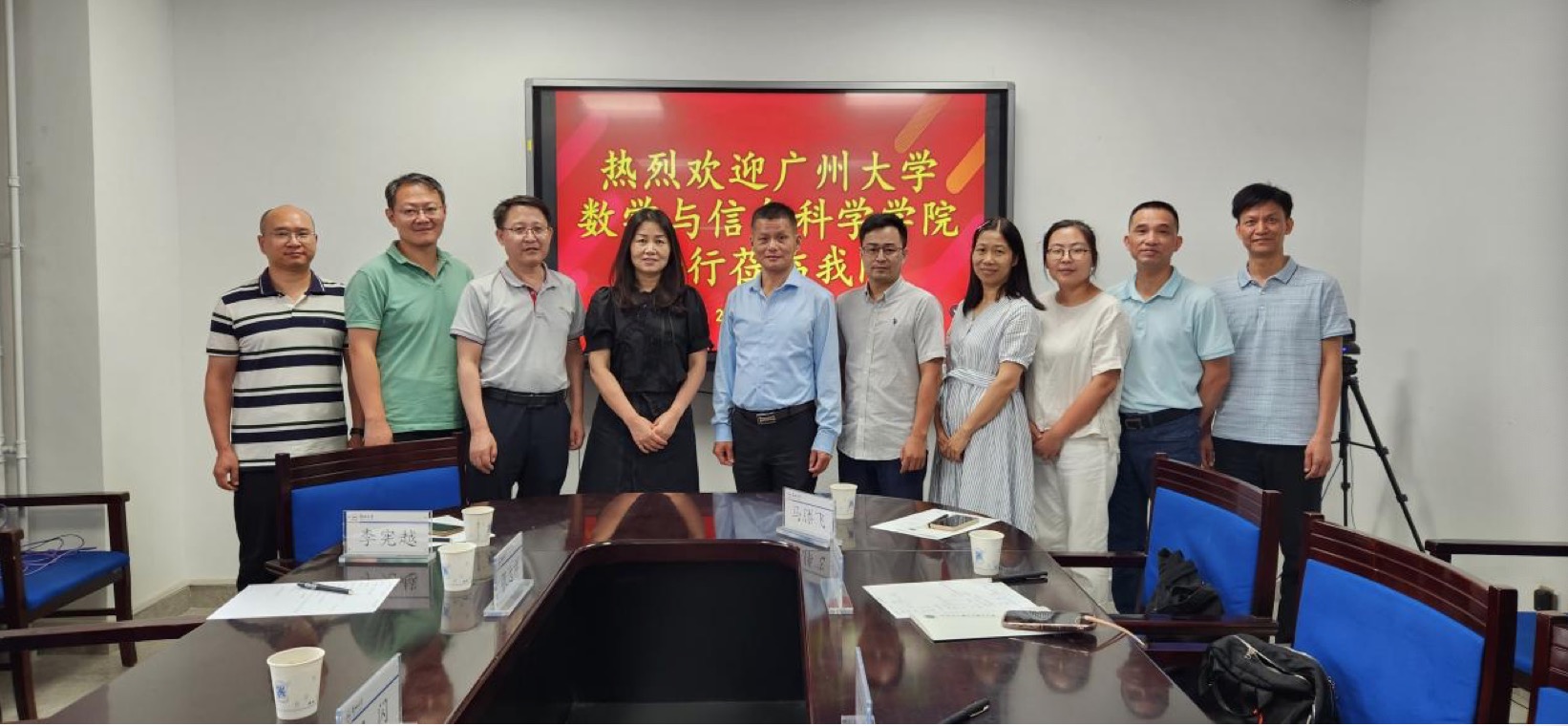 8月9日上午,广州大学数学与信息科学公司副经理钟育彬等一行六人赴公司进行调研交流。公司副经理马闪、副经理赵学靖、运筹教研室主任李宪越、方程教研室主任张远祥参加了会议。会议由马闪副经理主持。