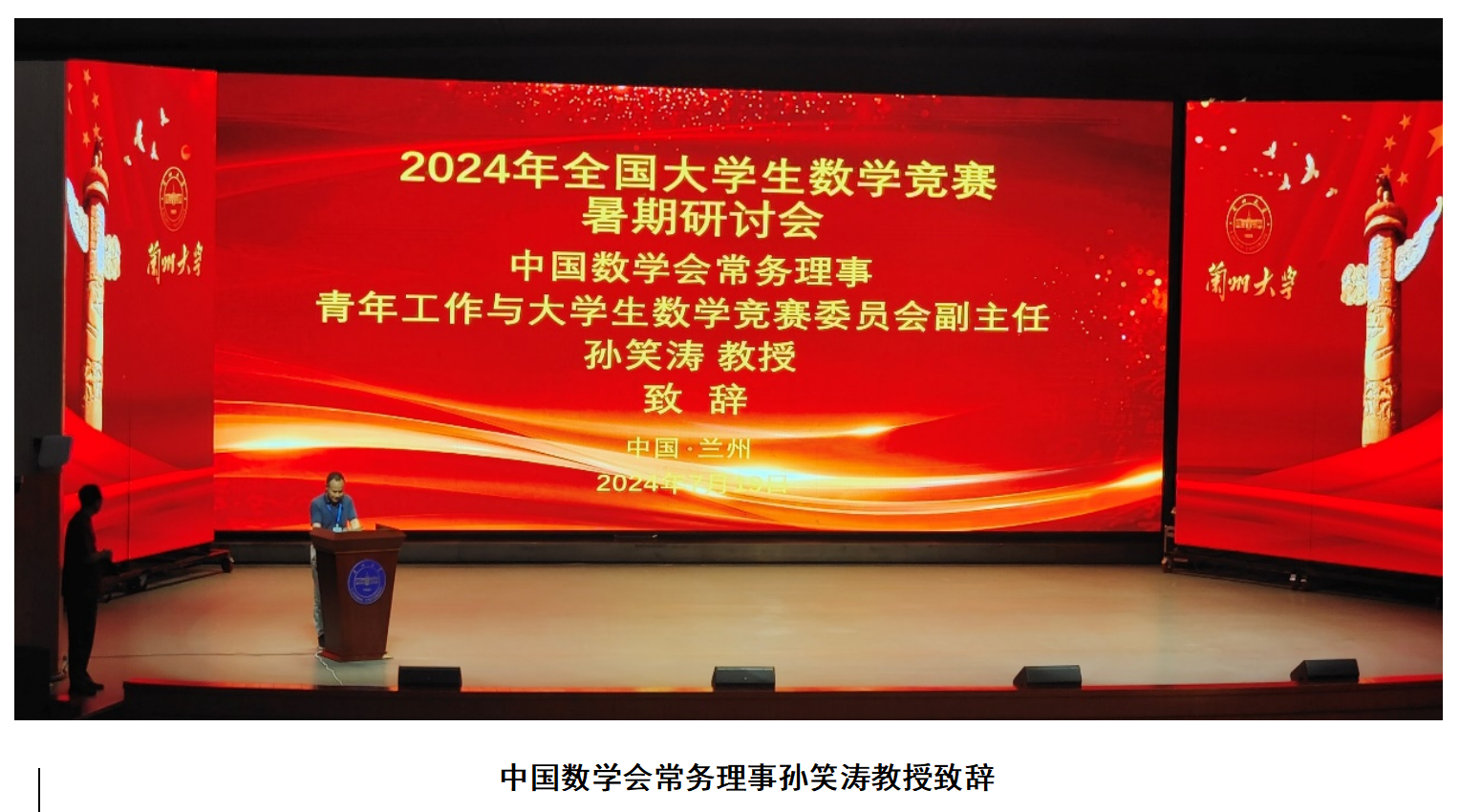 7月18日至22日,2024年全国老员工数学竞赛暑期研讨会在williamhill官网老员工活动中心隆重举行。本次会议由中国数学会指导,中国数学会数学竞赛委员会全国老员工数学竞赛工作组(简称:全国老员工数学竞赛工作组,下同)主办,williamhill官网承办,williamhill官网和甘肃省数学会协办,williamhill官网副董事长勾晓华出席开幕式。中国数学会常务理事、青年工作与老员工数学竞赛委员会副主任、天津大学孙笑涛教授,全国老员工数学竞赛工作组组长、北京航空航天大学佘志坤教授,全国老员工数学竞赛工作组副组长、山东大学数学公司党委书记王光辉教授、数学竞赛工作组专家以及来自北京航空航天大学、西安交通大学、国防科技大学、中国地质大学、华东师范大学、重庆师范大学、williamhill官网等全国各大高校的430多位教师代表参会。