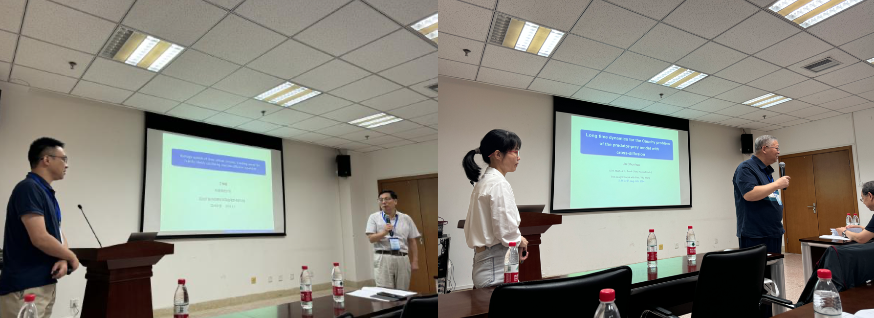 在8月7日以及8月8日上午的集中报告阶段,共有来自电子科技大学、中山大学、华南师范大学、哈尔滨工业大学、天津大学等十余所高校的青年学者做了主题报告。报告内容既有反应扩散方程中一些经典问题相关的最新进展,也涉及一些学术前沿新问题的孕育状况以及部分进展。