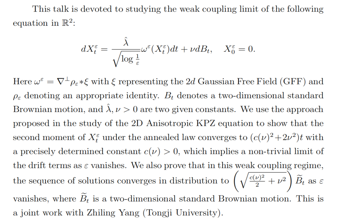 报告题目:Weak coupling limit of a Brownian particle in the curl of the 2D GFF
