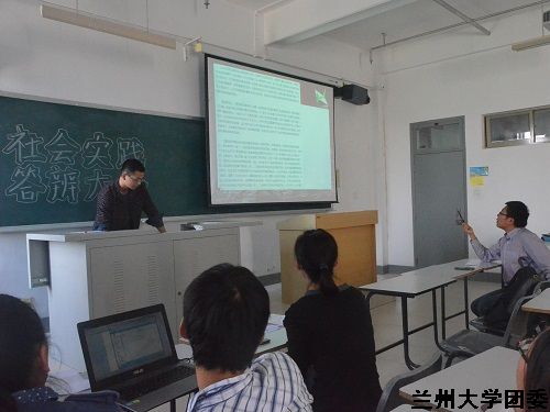 在戚老师对社会实践的重要性做出简要讲解,并强调了几点注意事项后,二十三个实践团队轮流上台展示自己团队的风采。他们的实践课题丰富多样,从关爱留守儿童、弘扬和传承民族精神、了解少数民族文化、保护环境等各方面进行了社会调研,实践地点遍布祖国大江南北。答辩讲台上,团队主讲人员个个英姿飒爽,用流畅动情的演讲,精美的ppt,对他们各自团队的课题进行了深入的解说,并展示了他们的探索结果。戚老师针对各个队的问题进行了具体的指导,并帮他们找出了实践中的不足。