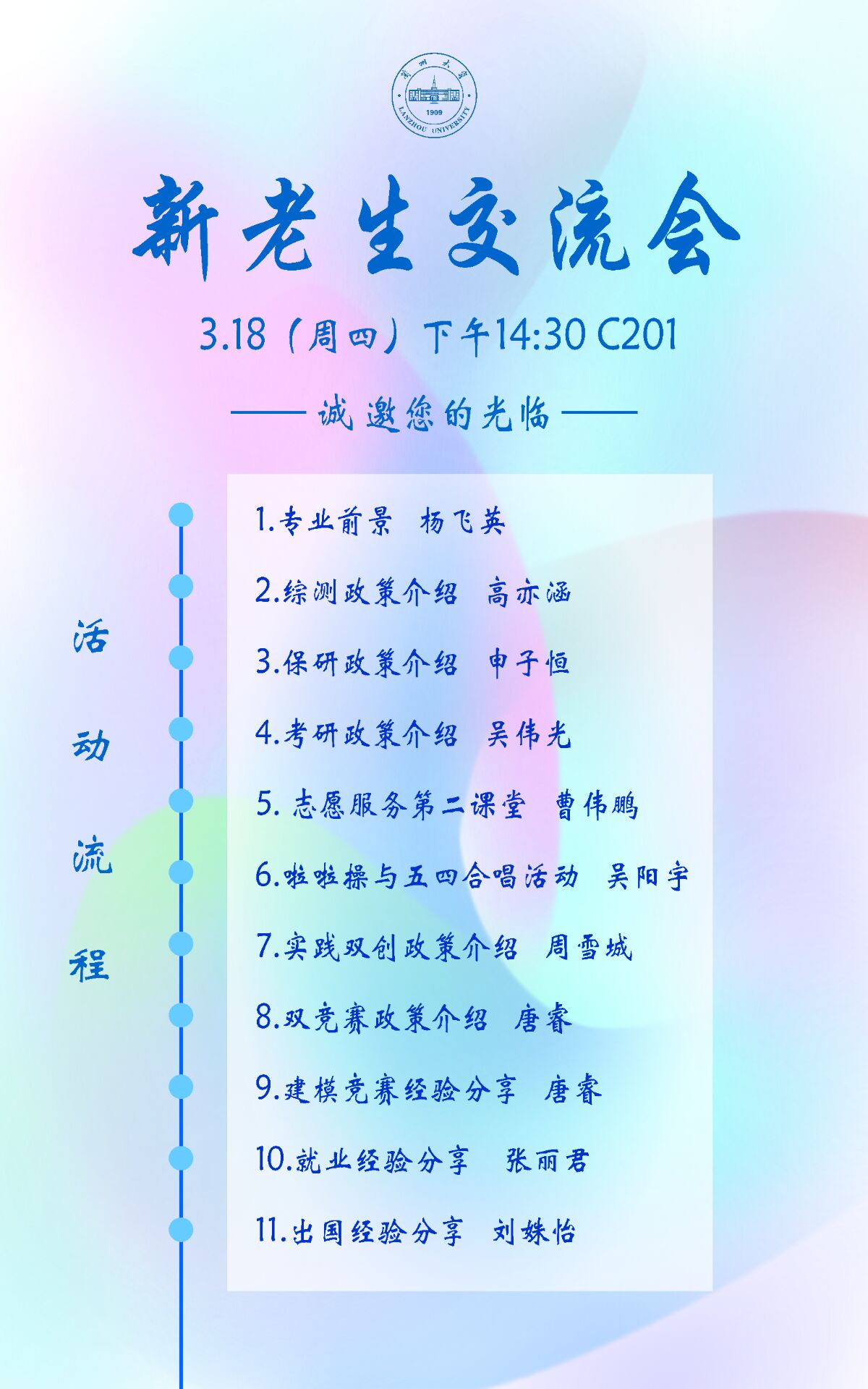通过本次新老生交流会,同学们对于自己的专业与未来都有了更清晰的认识,更加明确了自己的目标,坚定了自己的决心,相信同学们一定会不懈努力,砥砺前行,驶向成功的彼岸!