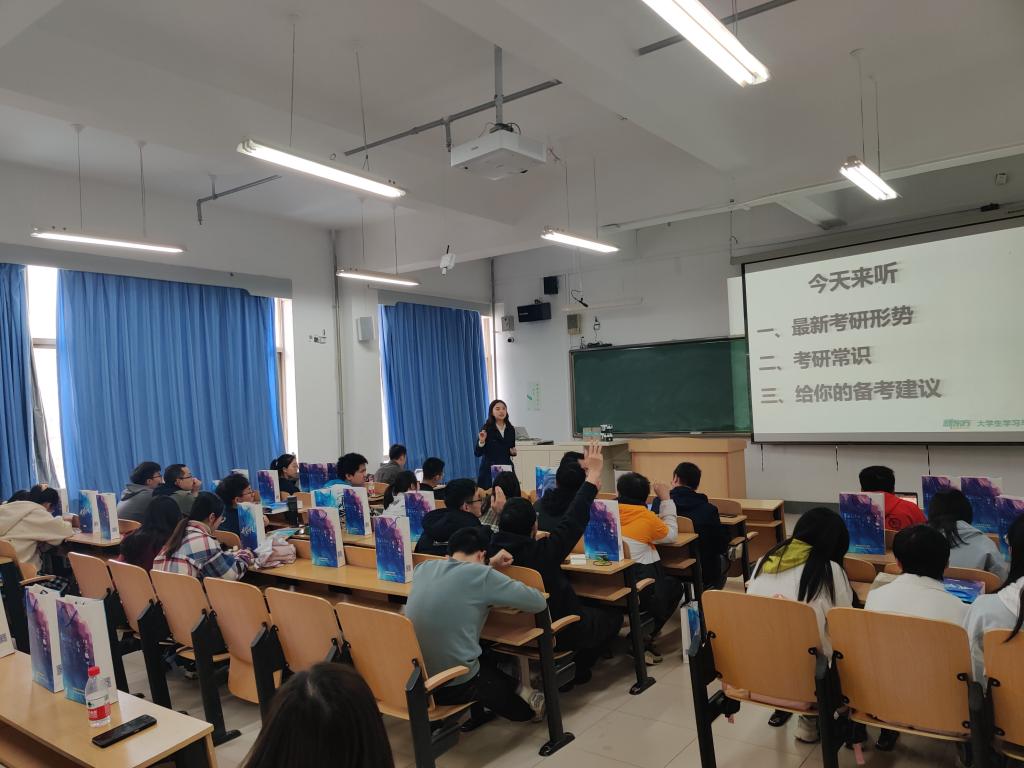 包雪龙员工结合自身工作经历,为母校学弟学妹们讲述从“兰大人”向“新东方人”的转变,分享了求职过程的宝贵经验。考研形势宣讲阶段,邓凯伦老师结合近年研究生招考形势,从考研人数、考研难度、报考说明、备考规划等角度为同学们做了较为全面的分析,为备考同学们提供了复习指南。