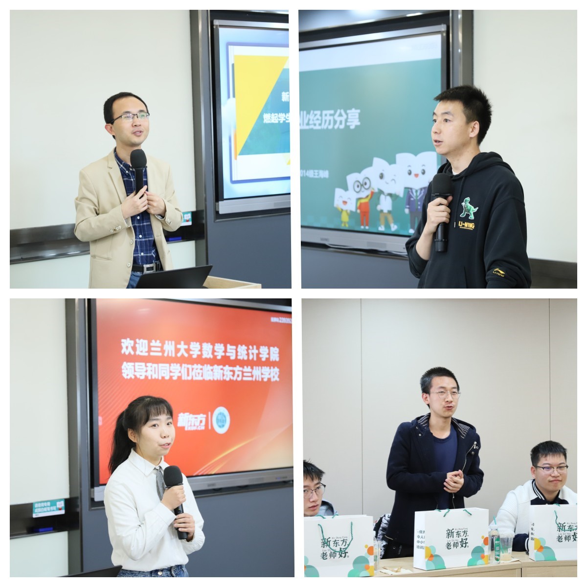 活动现场,陈孚董事长介绍了新东方教育科技集团及兰州公司业务经营与人才发展战略,公司优秀院友胡文兵、王海峰和在校员工代表进行了职业发展的分享,感谢williamhill官网的培养和支持。冯济骞书记在交流中提到,新东方在兰州发展的十五年间为所体现出的社会责任感令人敬佩,也希望能够借助此次活动双方能够达成不同层次的合作,除了解决员工的就业问题外,双方加深教学合作,为更多的在校员工提供实习及全面培养的机会。