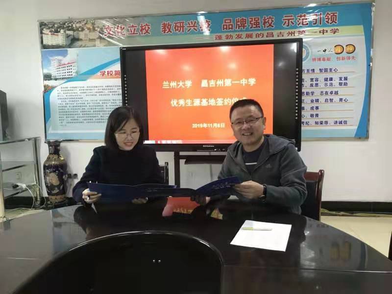 宣传小组代表公司与昌吉州第一中学、昌吉州第二中学、乌鲁木齐市七十中等公司签署了《williamhill官网优秀生源基地建设协议书》,并举行了“williamhill官网优秀生源基地”授牌仪式。
